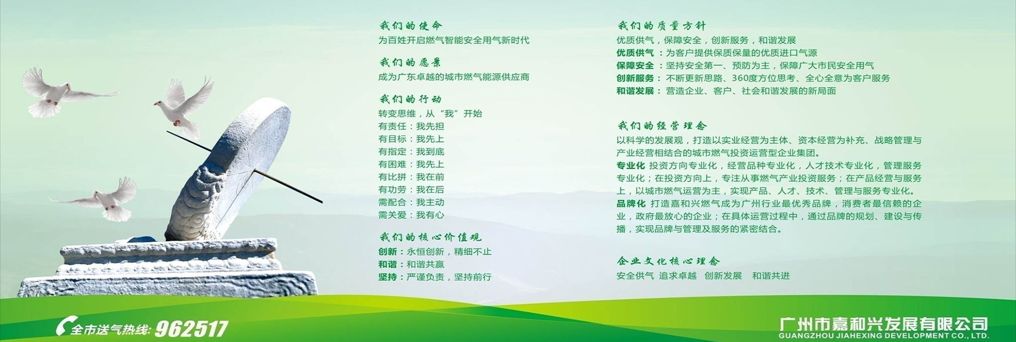 公司在廣州經(jīng)營(yíng)多年的液化氣的過(guò)程中,積累了大量的行業(yè)資源,積極配合政府管理及倡導(dǎo)行業(yè)溝通協(xié)調(diào)?,F(xiàn)在“嘉和興”已成為廣州液化氣市場(chǎng)的著名品牌。